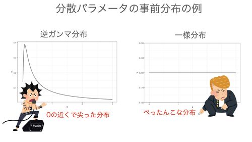 ギブス・サンプリングの実装練習:(1-2)分散成分の事前分布を一様分布にする